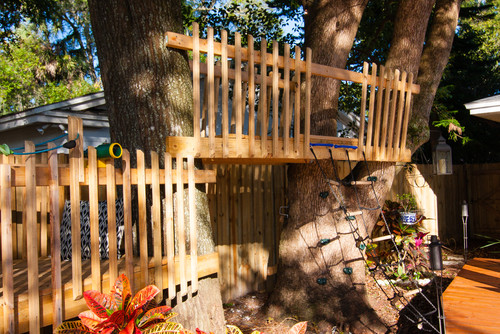 The first thing you’ll want to do is find a space in your back yard in which to build a deck. Try to build it nearby a couple of large, strong trees – but not so close so that the larger branches get in the way of your enjoyment of the deck. Once you build the deck, you can use the leftover wood in order to build a tree house or two. Don’t think that a tree house has to be all the way up near the top of the tree. You’ll want it at a safe height, and preferably easy to access no matter what your age. One thing to consider implementing is several ways to get up the fort, such as a wooden staircase in the back and a rope ladder in the front.