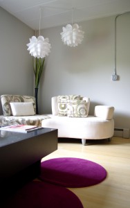 This modern living room on the left uses light woods to complement the white furniture. Although there are dark accent colors, the overall feel of the room is fresh and open because of the wood floors. Light woods are great for small spaces and areas with little natural light because they can make these spaces seem larger and brighter.
